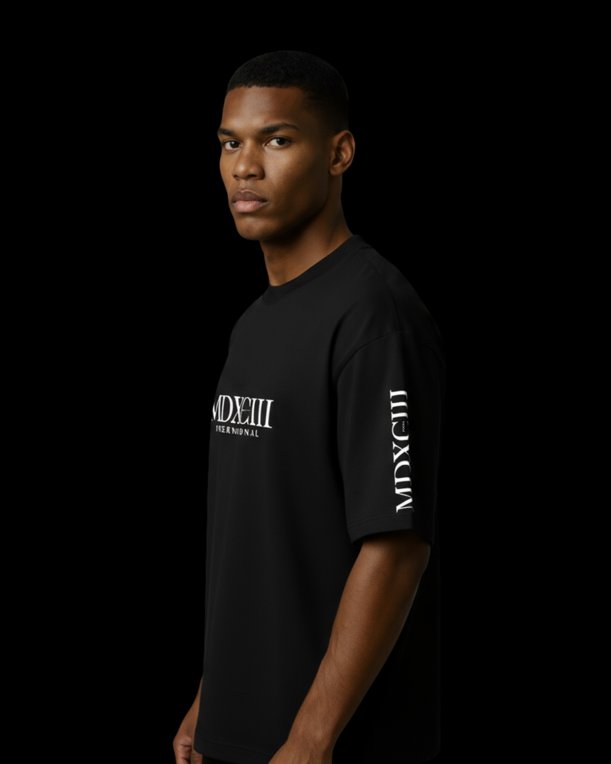 Le t-shirt MDX International met l'identité en avant : le logo « MDXCIII INTERNATIONAL » est clairement visible sur la poitrine et les manches sont rehaussées de touches assorties qui prolongent le message sur les deux bras. Minimaliste en apparence, mais discipliné en dessous. C'est l'uniforme idéal pour rester calme et faire avancer le jeu.