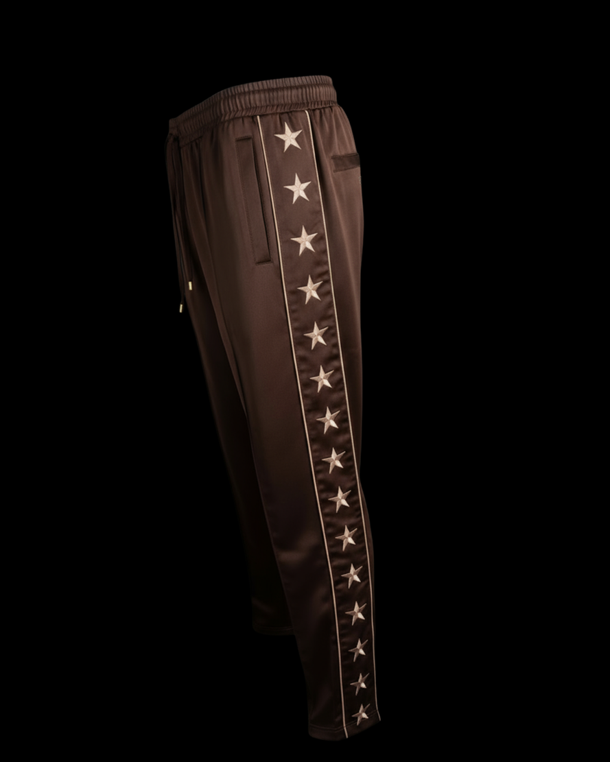The icon in motion. AIMO channels POGBA MDX’s comeback DNA into a luxury track pant—sleek satin body, star-embroidered side panels, and metal-tipped drawcord built for everyday wins. The silhouette is clean and tapered with just the right drape, landing effortlessly between sport and street.
